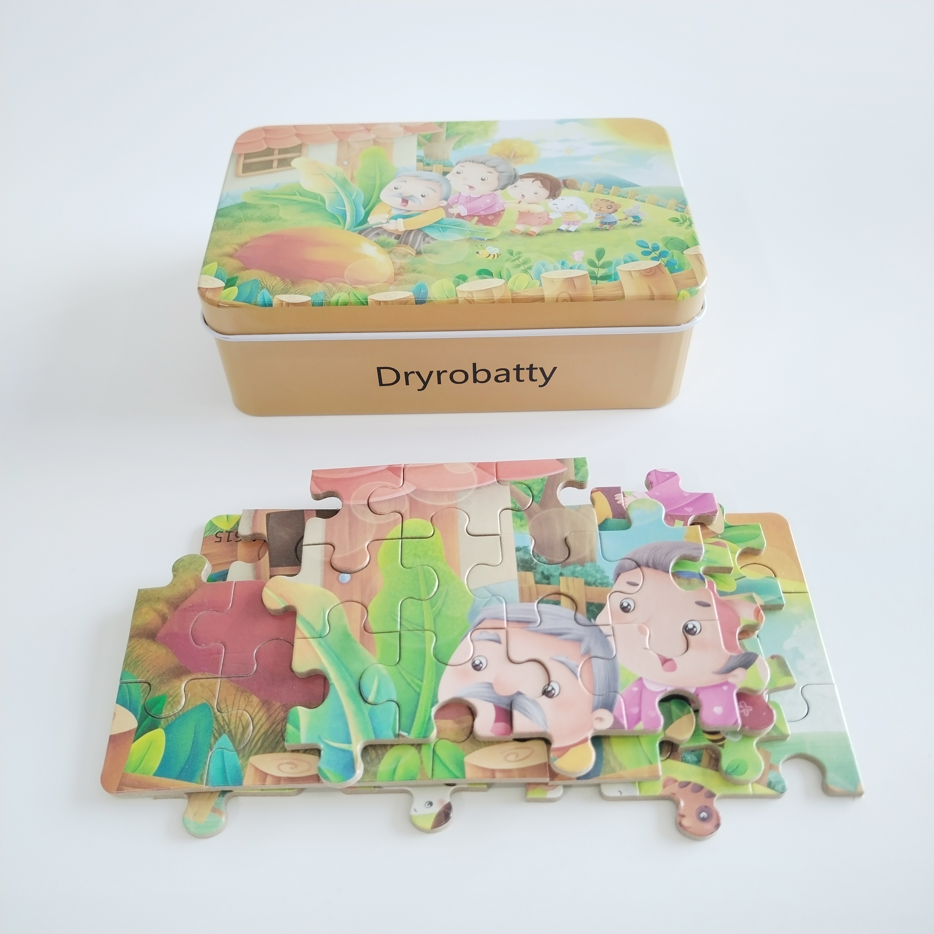 CONNOTATION STORY: This jigsaw puzzles is a classic Russian folk story "Pulling the Turnip", which tells the story of an old man who planted a big turnip, but because it was too big and too heavy, he could not pull it out by himself. Therefore, he sought help from his family, first the old woman, then the little girl, then the puppy, the kitten and the mouse, and everyone worked together to successfully pull out the turnip.
