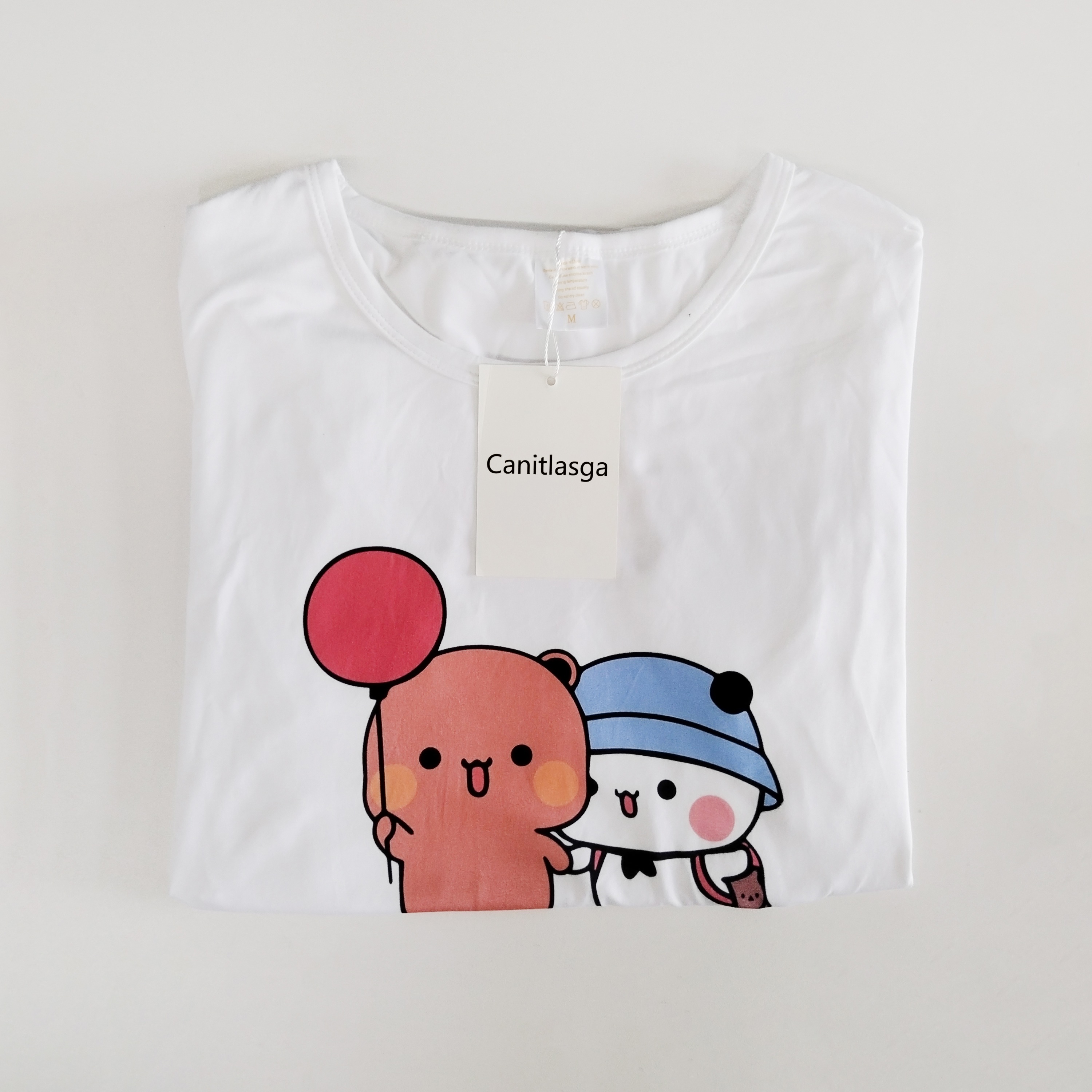【ADORABLE DESIGN】Featuring a charming graphic of Bubu and Dudu walking together holding hands, Bubu holding a balloon and Dudu carrying a cute little backpack, this t-shirts adds a playful touch to your wardrobe, perfect for spreading love and positive energy.