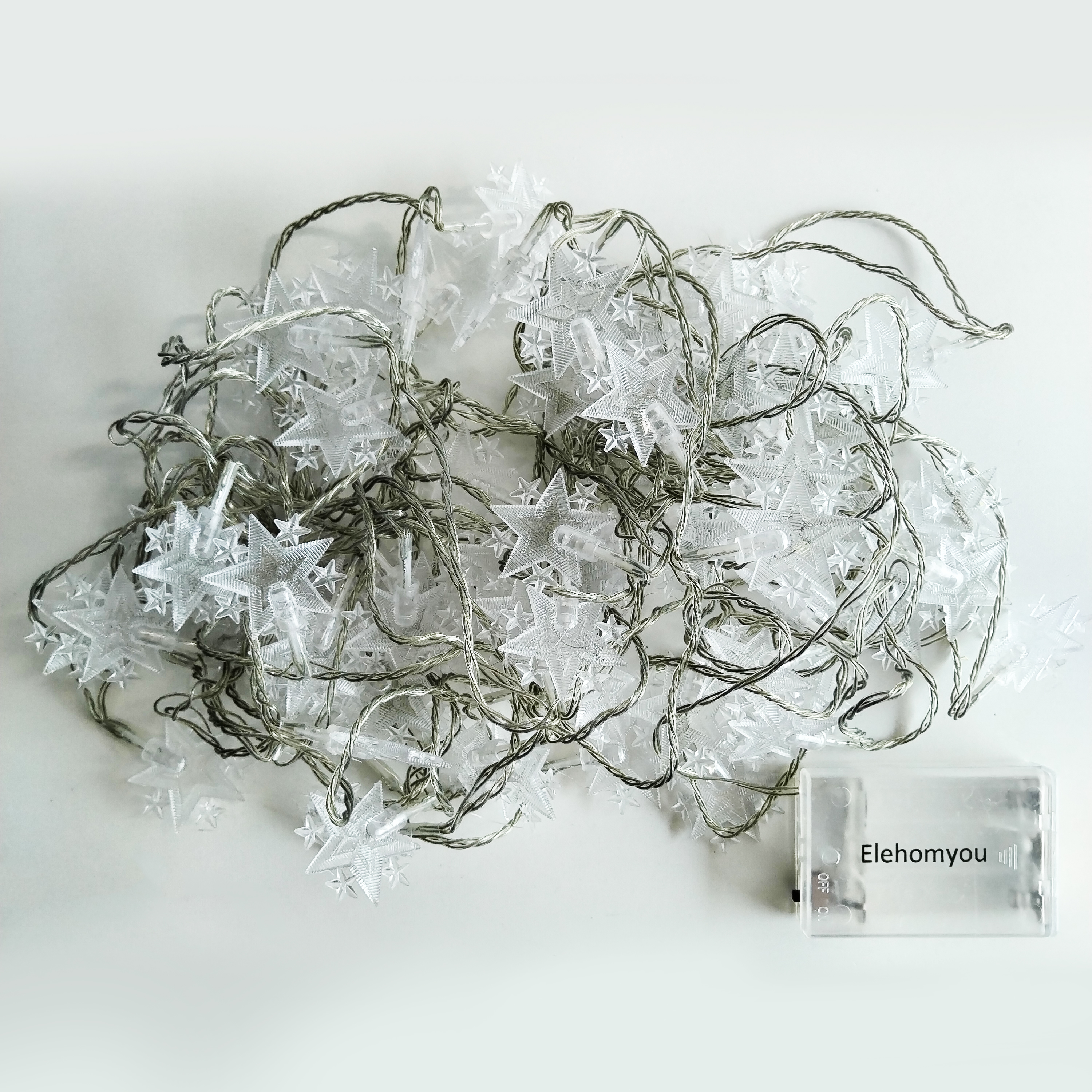 【80LED Star String Lights】32.8 feet led string lights with 80 cute little stars. Each star has a size of 1.3 inches, which is neither too big nor too small. Fun star-shaped pixie lights that made of crystal PVC, strong and durable, presents a soft warm light. The cord is also clear white, which complements the stars.