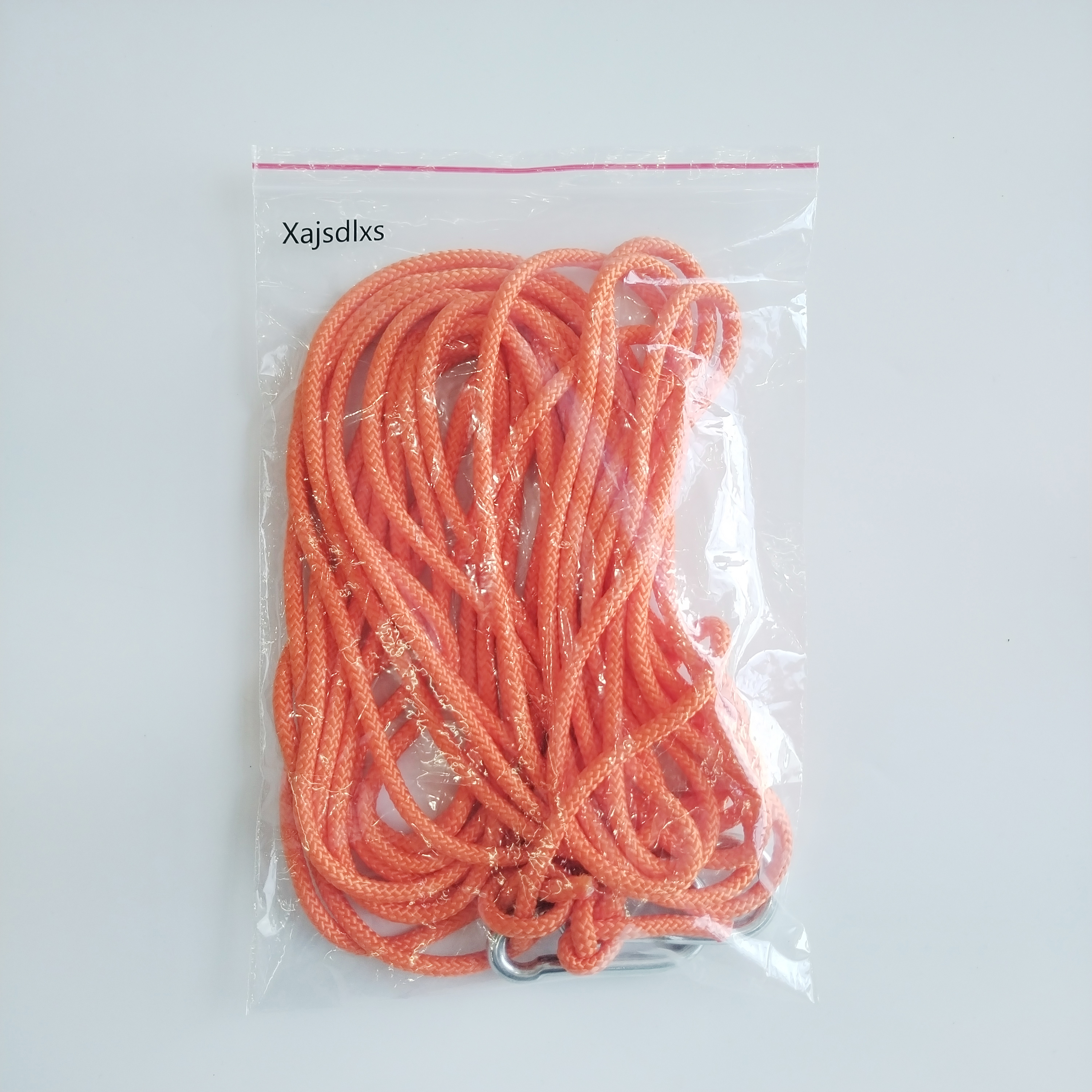 DEATAIL PARAMETER: Length10 meters(32ft) | diameter:6 mm| pull(max tensile force):18kn(3968lbs) | weight limited:500kg (1102lbs)|both end sewed with 2 heavy duty carabiner clip,easy to operate, close and stable, allowing you to climb time safe.